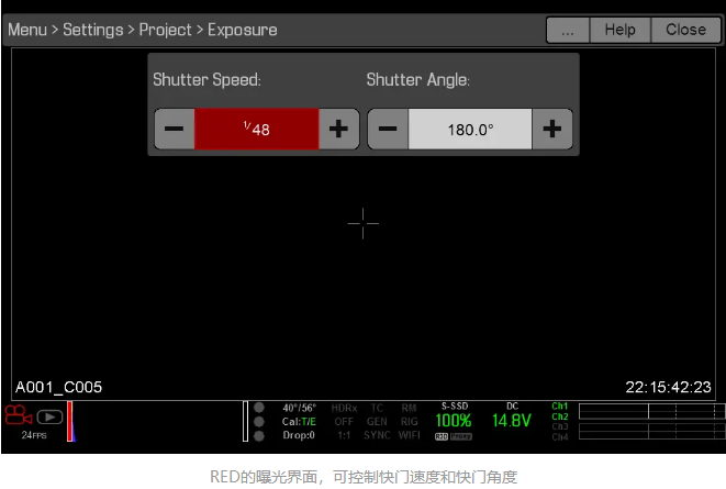 以RED攝影機(jī)為例,你可以用快門速度和快門角度來控制。快門速度通過秒或幾分之一秒來表示時間的長短。快門角度則是運(yùn)動捕捉中一個獨(dú)特的術(shù)語,它闡述了快門速度與幀速率之間的關(guān)系。